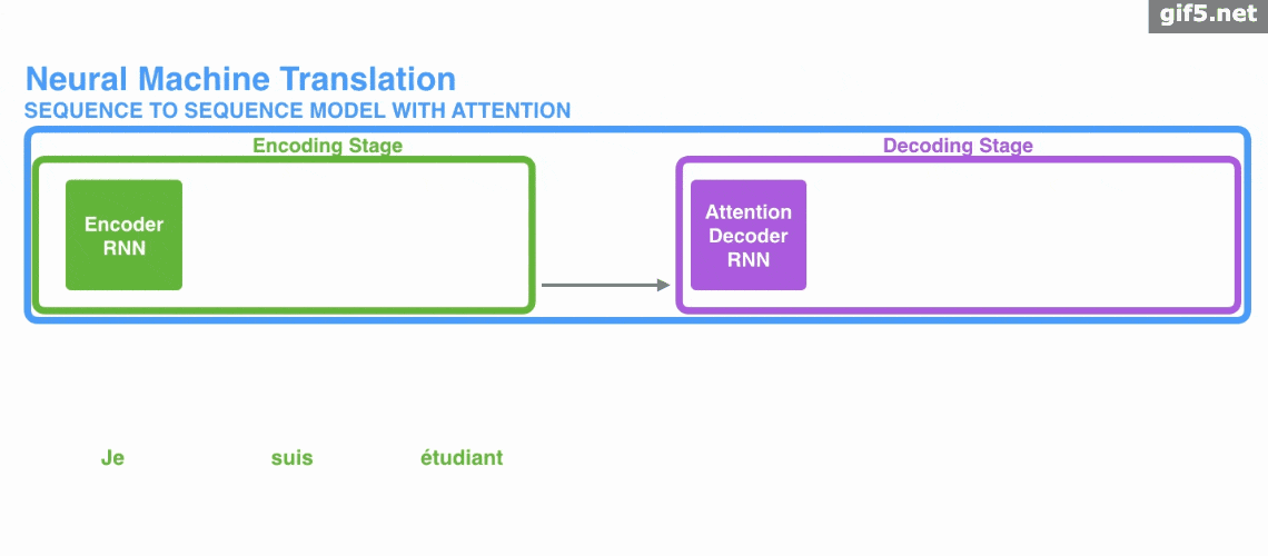 attention 引入 Encoder-Decoder 框架下,完成机器翻译任务的大致流程。
